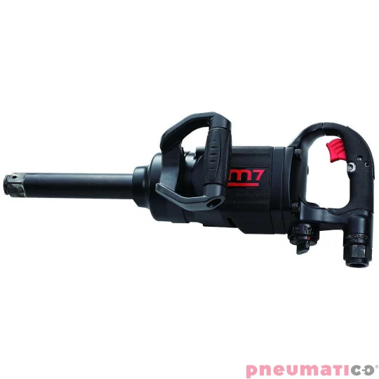 Pneumatyczny klucz udarowy marki Mighty Seven, który jest wyposażony w system podwójnego młotka Twin Hammer. Klucz ten ma sporo mocy i cechuje go wydłużona żywotność, zużywa też bardzo mało powietrza. Kowadło chromowane niklem molydenum i poddane dobrej obróbce cieplnej, czy płynnie regulowana prędkość t kolejne cechy młotka. Narzędzie przystosowane jest do prac pod dużym obciążeniem. Doskonale sprawdzi się do użytku w intensywnych pracach w przemyśle automobilnym - przy ciężarówkach czy tirach.