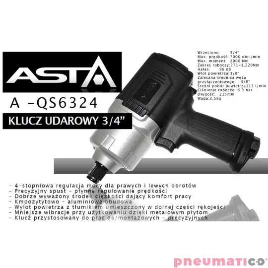 Klucz udarowy ASTA A-QS6234 3/4" 2000Nm