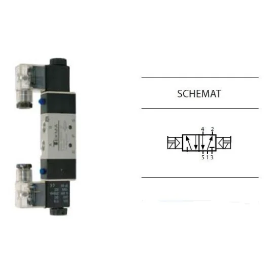 Zawór elektropneumatyczny TEKMA dwustronny, bistabilny z elementem ręcznego przesterowania 5/2 1/4" TG-2522-08-DC24 NC 24VDC