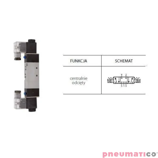 Zawór elektropneumatyczny TEKMA dwustronny, bistabilny z elementem ręcznego przesterowania centralnie odcięty 5/3 1/8" TG-3512-06C-AC220 220VAC