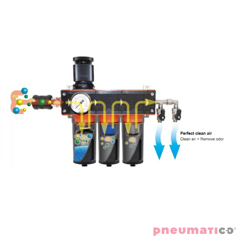 Filtr powietrza Pneumatico AIRPRO-3 potrójny z aktywnym węglem 1/2".