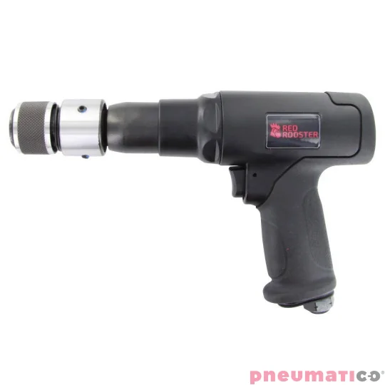 Młotek pneumatyczny firmy Red Rooster o dużej wydajności ze zredukowanymi wibracjami i z możliwością instalacji uchwytu szybkomocującego do dłuta. Wszechstronność młotka sprawia, że nadaje się on do użytku profesjonalnego w różnych sektorach.