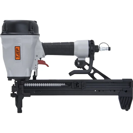 Gwoździarka pneumatyczna TJEP CP-40, która przeznaczony jest do wbijania gwoździ do betonu a także do mocowania do niego płyt kartonowo-gipsowych oraz profili wykonanych ze stali. Gwoździarkę cechuje możliwość regulacji głębokości wbijania gwoździ.
