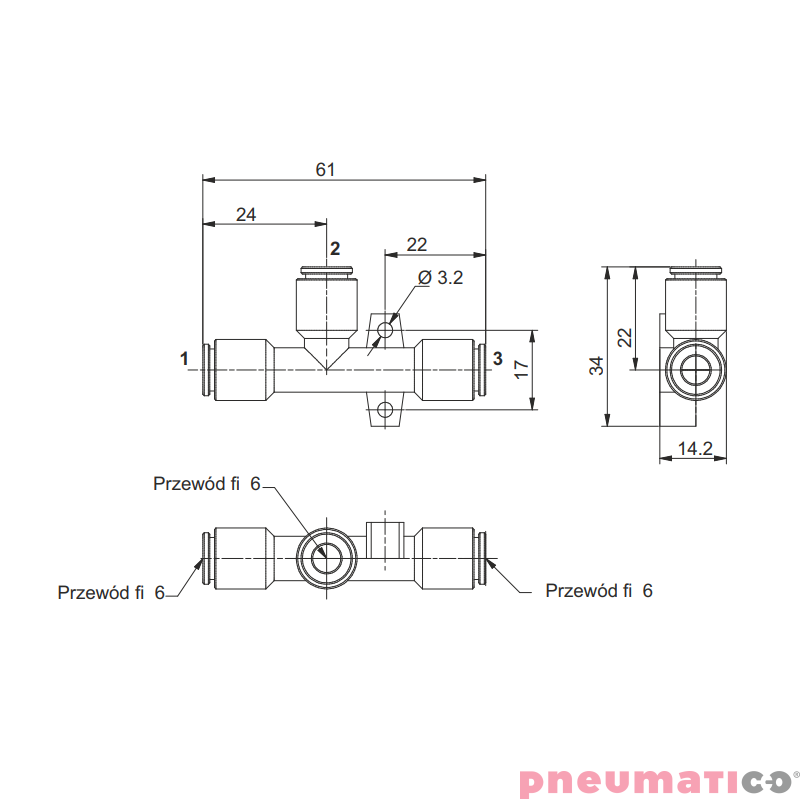 Jednostopniowy generator podciśnienia (eżektor) T06 PNEUMAX 19T06.S.07.HV.ZZ