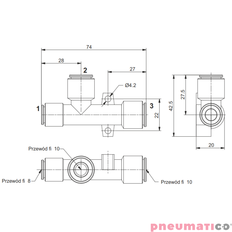 Jednostopniowy generator podciśnienia (eżektor) T10 PNEUMAX 19T10.S.13.HV.XX