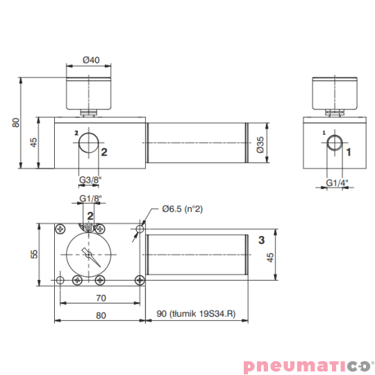 Jednostopniowy generator podciśnienia (eżektor) G3/8" PNEUMAX 19M38.S.18.HV.VS
