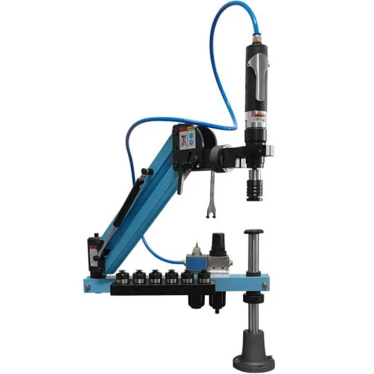 Gwintownica pneumatyczna na ramieniu pantografowym, wyposażona w głowicę obrotową. Narzędzie przeznaczone jest do profesjonalnych zastosowań. Ramię doskonale równoważy masę i stabilizuje pionowe położenie gwintownicy.