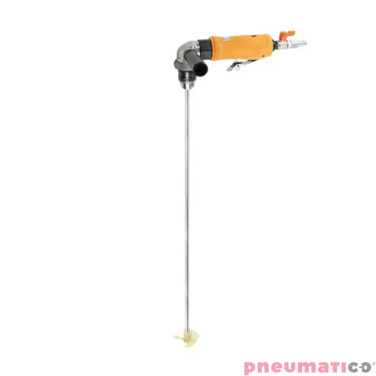Lekkie mieszadło pneumatyczne marki Pneutrend, przeznaczone do pracy ręcznej. Stworzone na bazie wiertarki pneumatycznej Pneutrend z regulacją prędkości 0-1900/min (prawe obroty). Mieszadło dedykowane jest do mieszania w pojemnikach 5-10 litrowych. Dostarczane ze śmigłem poliamidowym o średnicy 65 mm.