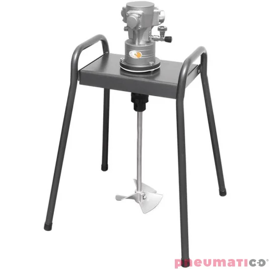 W zestawie mieszadło z wirnikiem śmigłowym o średnicy 165mm. Wytwarza silną cyrkulacje osiową tworząc lej w mieszalniku ułatwiający zwilżanie i rozpuszczanie proszków (efekt ssania od dna). Wał napędowy wykonany ze stali i wirnik ze stopu lekkiego (duraluminium). Po zastosowaniu zaworu w układzie zasilania silnika sprężonym powietrzem wszystkie mieszadła mają możliwość pełnej regulacji