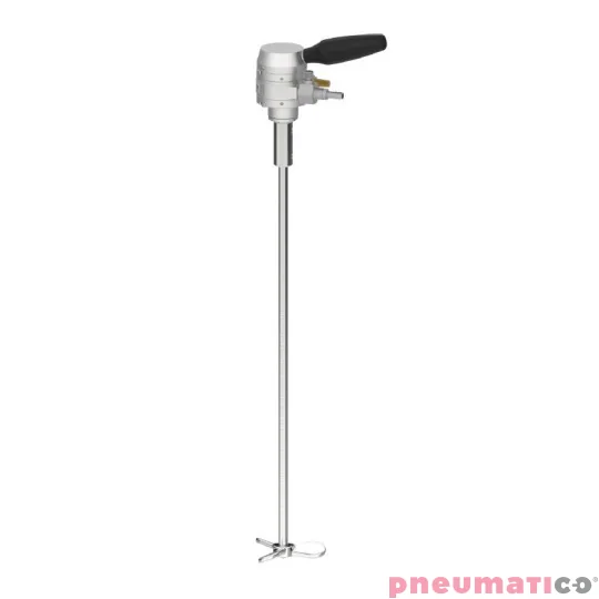 Mieszadło AA MAN z silnikiem pneumatycznym służy do spulchniania, mieszania i utrzymania konsystencji płynnych materiałów powłokowych. Powyższy model charakteryzuje się silnikiem o moc 0.07kW ( 70W ). Mieszadło możemy zamontować na statywie bądź używać ręcznie. Wałek mieszadła wykonany został ze stali kwasoodpornej. Prędkość obrotową mieszadła można regulować w zakresie od 0 do 800 obr/min. Należy pamiętać by łopatki wirnika były w odległości min 25mm od ścianki i dna zbiornika.