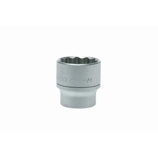 Nasadki dwunastokątne calowe. Ze stali chromowo-molibdenowej. Chromowane na mat. Długość 49.5 mm. Zgodne z normą DIN 3124/ISO 2725.