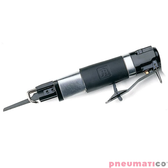 Pneumatyczna piła marki Ingersoll Rand, przeznaczona do cięcia blachy o ruchu posuwisto-zwrotnym z gumowym pokryciem rękojeści dla wygody operatora. Dzięki ograniczeniu wibracji narzędzie jest zalecane do prac przy karoseriach, tłumikach, układach wydechowych oraz wycinaniu szyber-dachów. Płynna regulacja prędkości spustem. Zestaw odprowadzenia powietrza. Piła dostarczana z dwoma brzeszczotami i kluczem imbusowym.