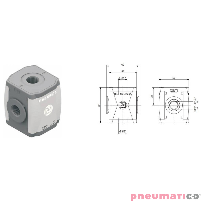 Rozdzielacz 3/8" Pneumax T172BPA