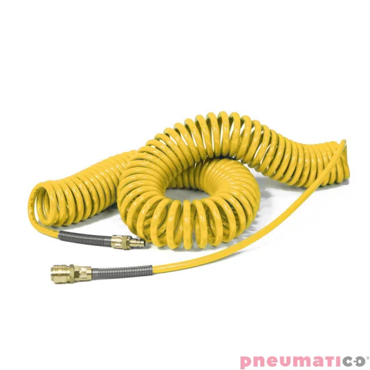 Wąż spiralny przemysłowy Rectus PU 5x8mm 12m z prostą końcówką z szybkozłączem TBC/26KK 0805-12Y żółty