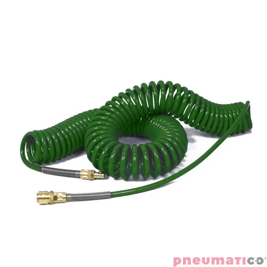 Wąż spiralny przemysłowy Rectus PU 6,5x10mm 12m z prostą końcówką i szybkozłączem TBC/26KK 1065-12G zielony