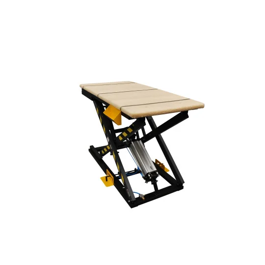 Tapicerskie stoły nożycowe to urządzenia zasilane sprężonym powietrzem, które znajdują zastosowanie w branży meblowej przy produkcji mebli tapicerowanych. Pneumatyczne stół tapicerski 3TS-M, który oferujemy znacznie ułatwia użytkownikowi pracę dzięki specjalnej nożycowej konstrukcji, która unosi i obniża umieszczone na nim konstrukcje meblowe. Zautomatyzowany system sterowania oparty na siłownikach znacząco zwiększa wydajność i podnosi komfort pracy operatorów stołów tapicerskich. Stół w standardzie wyposażony jest w przyłącze (wyjście) do urządzeń pneumatycznych. Po odłączeniu zasilania, stół blokuje się automatycznie (odłączenie zasilania nie powoduje opadnięcia blatu). Stół posiada także szufladę na podręczne akcesoria tapicera.