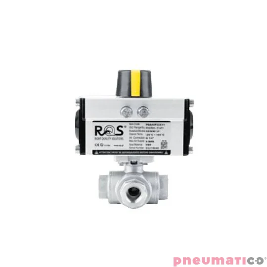 Zawór kulowy - trójdrogowy nierdzewny z kołnierzem 3/8" ISO 5211 130 BAR KULA "L" TYP BV531 z napędem jednostronnego działania - PSR PSBV531 FG03 S6R RQS