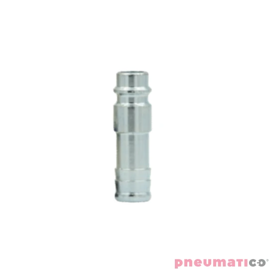 Wykonana z mosiądzu niklowanego, wtyczka gwarantuje wysoką odporność na korozję i zużycie mechaniczne. Jej konstrukcja jest zoptymalizowana pod kątem minimalnego oporu przepływu, co pozwala na pełne wykorzystanie potencjału systemów sprężonego powietrza wymagających ponadprzeciętnej wydajności. Karbowany profil tulei zapewnia szczelne i pewne osadzenie węża (zabezpieczone dodatkowo opaską zaciskową).