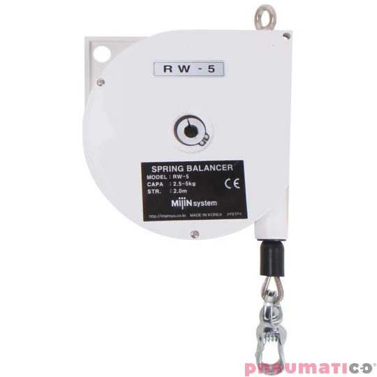 Balanser linkowy wyposażony w zwijacz przewodu do zasilania narzędzi pneumatycznych. Balanser posiada obudowę z tworzywa i stalową linkę. Do regulacji naciągu nie potrzeba narzędzi - służy to tego specjalne pokrętło, w które wyposażony jest balanser.