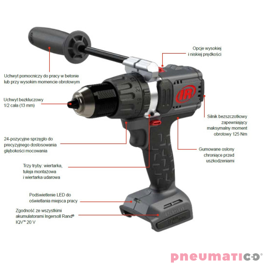 - SYSTEM AKUMULATOROWY: Uzyskaj dodatkową dawkę mocy dzięki akumulatorowi 20 V, który jest kompatybilny z całą platformą Ingersoll Rand IQV20™.