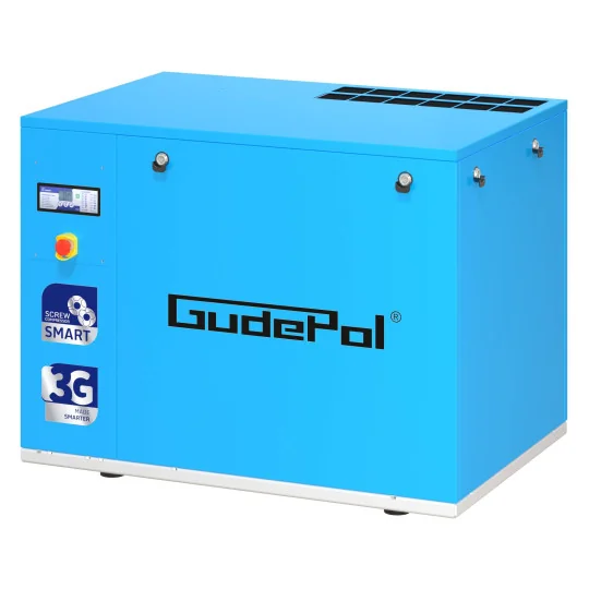 Nowoczesny kompresor SMART marki GUDEPOL posiada wysokiej jakości panel mikroprocesorowy układu sterowania z funkcją pamięci usterek, którego zadaniem jest informowanie użytkownika o trybie pracy urządzenia. Na wyświetlaczu pojawiają się następujące informacje: