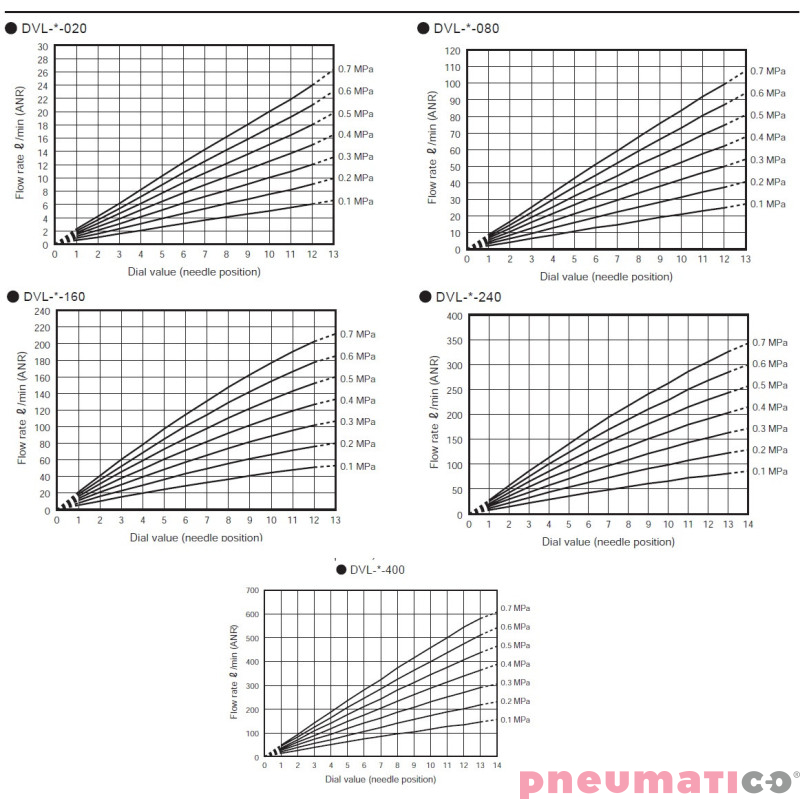 Zawory dławiące z serii DVL firmy CKD posiadają wyskalowaną tarcze pozwalającą precyzyjnie ustawić przepływ sprężonego powietrza, próżni lub azotu. Dzięki liniowej charakterystyce za pomocą wykresu można w łatwy sposób wyznaczyć żądany przepływ.