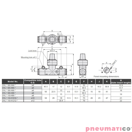 Zawory dławiąco - zwrotne CKD DVL ze skalą 6mm 240 l/min DVLS08H66240