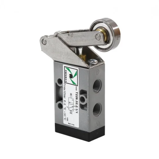T228.32.2.1/1 Zawór ręczny - dźwignia z rolką (łożysko kulkowe) sprężyna 3/2 PNEUMAX