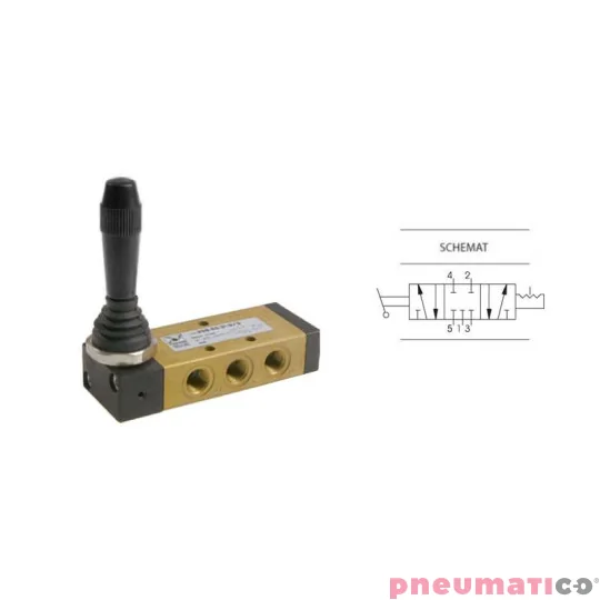Zawór ręczny z dźwignią boczną trójpozycyjną - 3 pozycje stabilne 5/3 PNEUMAX 1/8 Czarny 228.53.31.9/2