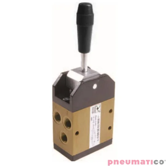 Zawór ręczny - dźwignia metalowa w osi, 3-pozycje 5/3 PNEUMAX