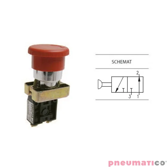 Zawór ręczny z przyciskiem awaryjnym dwupozycyjnym 3/2 NO PNEUMAX