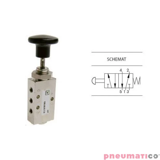 Zawór ręczny z przyciskiem typu grzybek i sprężyną 5/2 PNEUMAX M5 Czarny 105.52.8.1/2