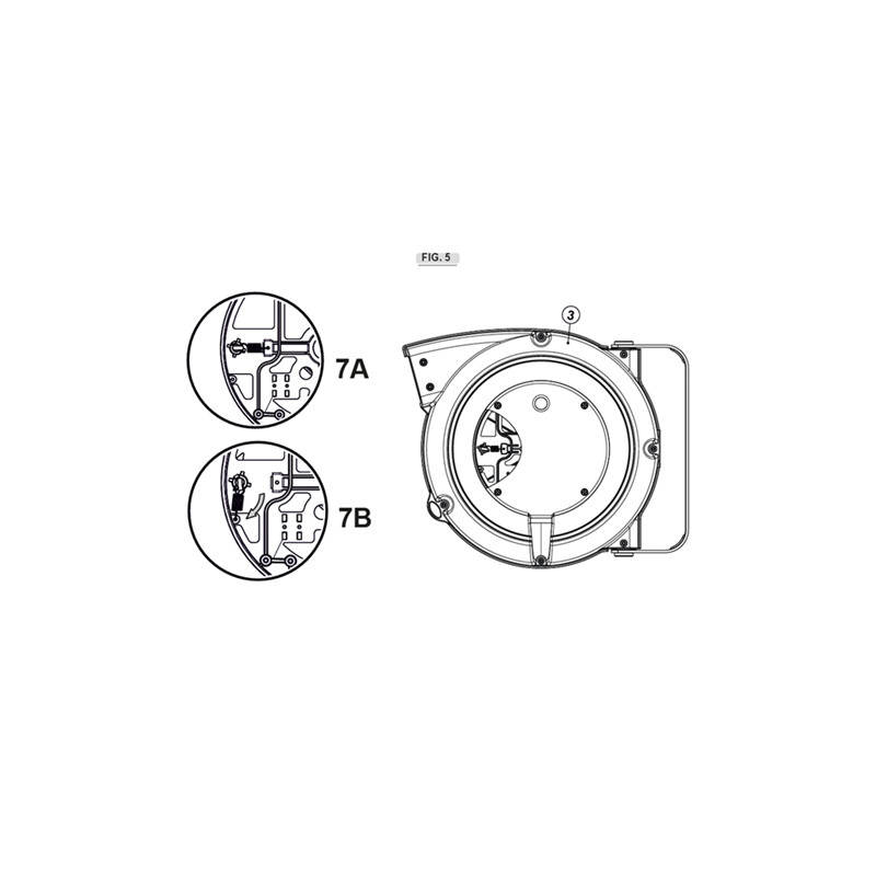 Gdy urządzenie zatrzymujące wąż jest wyłączone 7B: po zwolnieniu wąż jest automatycznie zwijany.